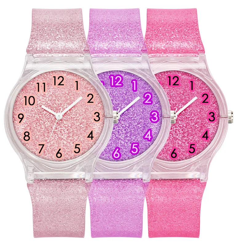 Name: Reloj de moda para niños, cronógrafo con correa de plástico transparente con brillo, gran oferta