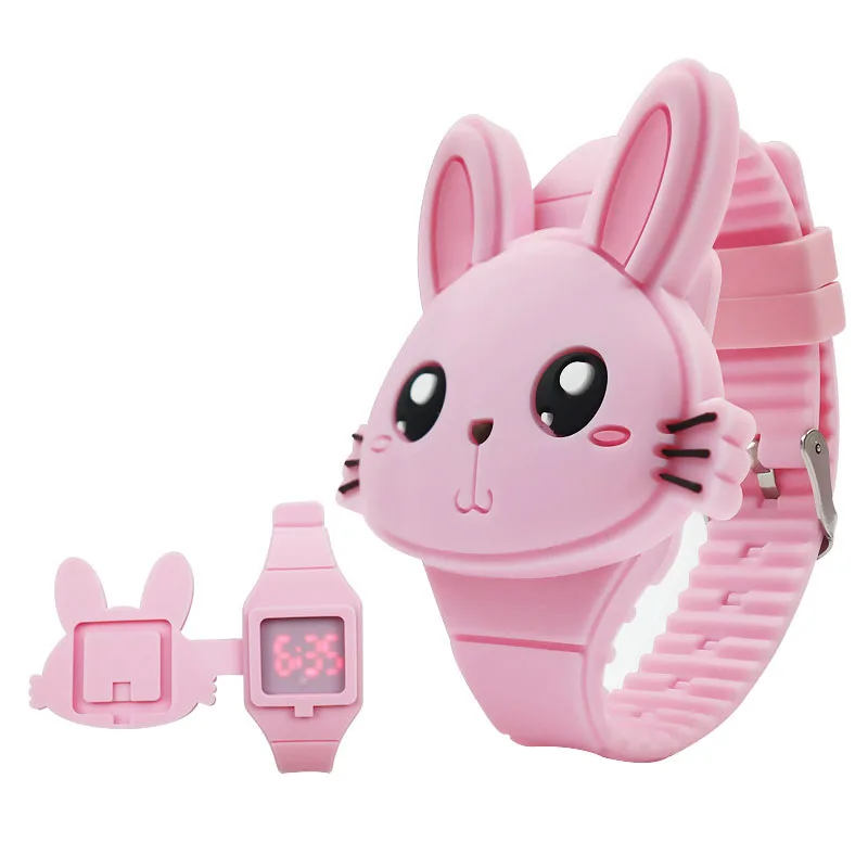 Name: Reloj electrónico LED para niños, pulsera de silicona con funda abatible de conejo de dibujos animados, regalo encantador, SMA66, 1 Uds.