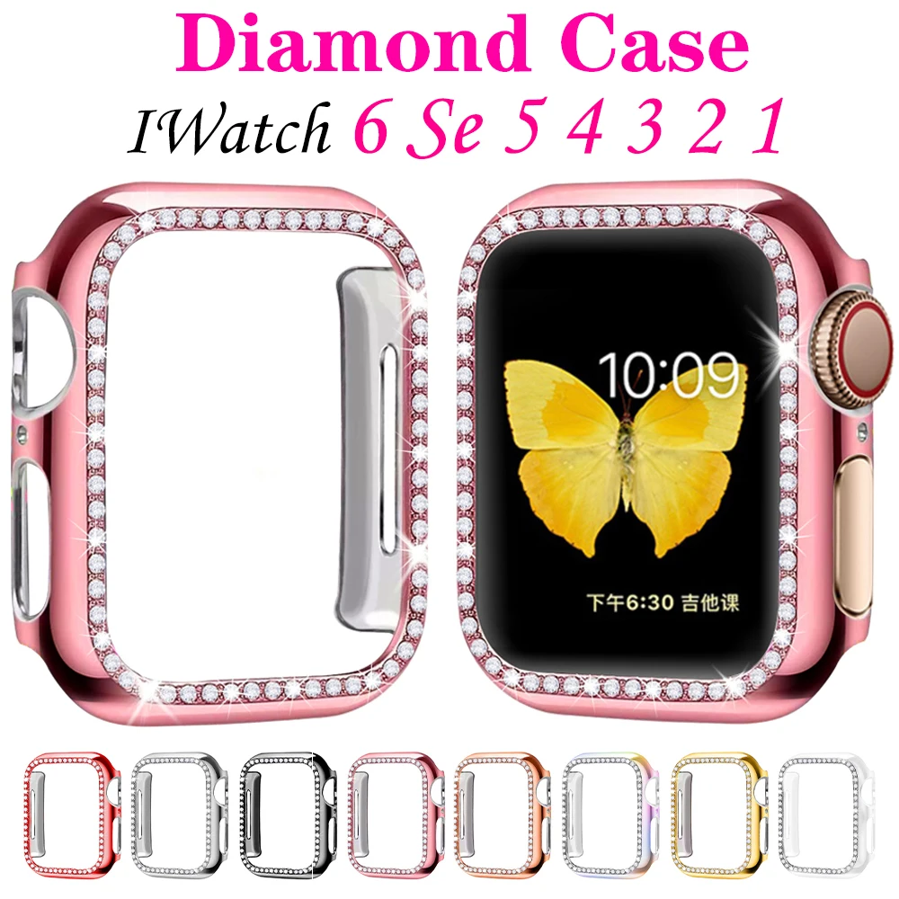 Name: Funda de diamante para Apple watch, accesorios para Apple watch 6 SE 5 4 3 2 1 44mm 40mm 42mm 38mm a mujer, Protector de pantalla
